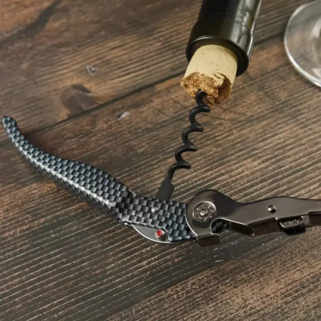 PULLTEX dvostopenjski odpirač za steklenice Monza Click Cut je odličen pripomoček, ki ga z veseljem uporabljajo tudi profesionalci in restavracije. Dvojna ročica odpirača omogoča revolucionarno odpiranje steklenic v dveh korakih, brez poškodbe steklenice ali zamaška. Nagrajen je bil s 1. nagrado na tekmovanju odpiračev Gevrey-Chambertin v Franciji. Čudovit zaključek z videzom karbonskega grafita daje 'Monzi' sodoben, športen videz. Spirala je izdelana iz nerjavečega jekla s teflonsko prevleko.