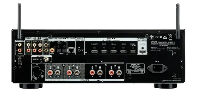 DRA-800H se s 4K Ultra HD HDMI in najnovejšimi brezžičnimi tehnologijami za pretakanje glasbe (Wi-Fi, AirPlay 2, vgrajen Bluetooth in HEOS) brez težav povezuje z vašim televizorjem, glasbenimi storitvami in Hi-Fi sistemom. Uživajte v omrežnem pretoku in predvajanju zvoka USB na sprednji plošči MP3, WAV, FLAC, ALAC in DSD (2,8 / 5,6 MHz). Opremljen z A / B zvočniškimi terminali, dvojnim izhodom nizkotonskega zvočnika, tremi digitalnimi in dvema analognima vhodoma, enim pfono (MM) vhodom in ARC za televizijski zvok, DRA-800H ponuja vrhunsko stereo poslušanje za vašo glasbeno zbirko in domači kino ogled.