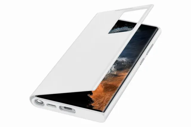 Odprta emb - SAMSUNG Galaxy S22 Ultra Clear View ovitek, bel