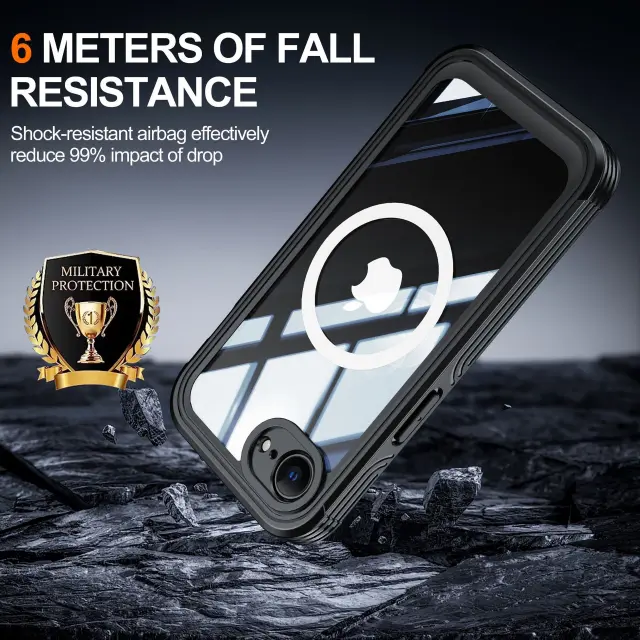 Odprta emb - ovitek za iPhone 16e,ohišje podpira brezžično polnjenje,prozorno 360 polno zaščitni,proti padcu in trku združljiv z MagSafe - črna