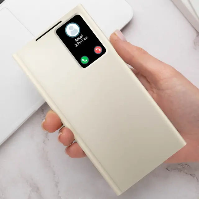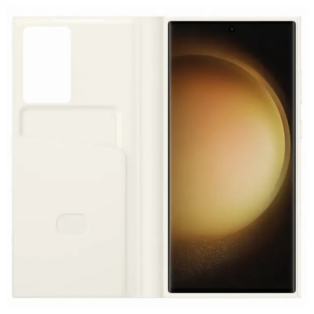 Odprta emb - Ovitek za Samsung Galaxy S23 Ultra Window Smart View Wallet Case Original krem