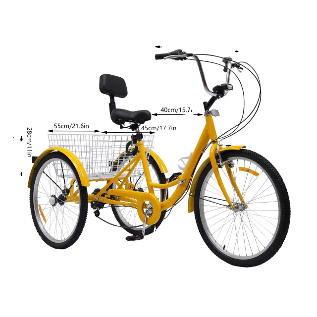 Odrasli tricikel, 7-stopenjski sistem prestav, velika nosilnost, rumena