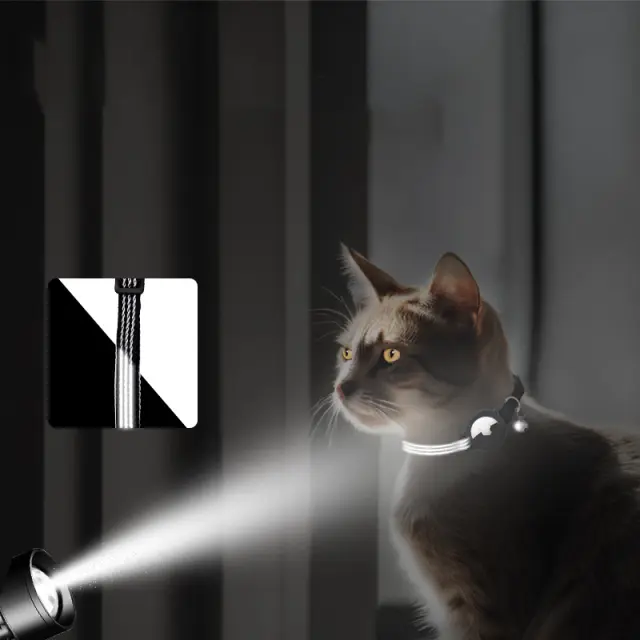 Odsevni, ki sveti v temi: okoli ovratnice je odsevni trak, ki izboljša vidljivost v temi.
