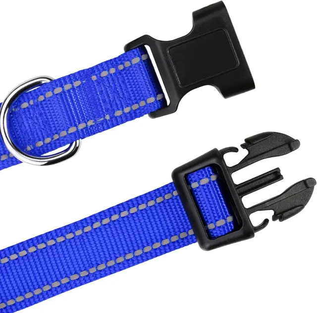 TagME odsevna ovratnica za pse predstavlja kakovosten pripomoček, ki je izdelan iz trpežnega najlona visoke gostote. Material zagotavlja udobje in prožnost, hkrati pa je ovratnica lahka in elegantna za vsakodnevno uporabo. Vsi spoji najlonskega traku so skrbno obdelani s šivanjem, kar preprečuje praske na koži vašega psa in ščiti vaše roke med vodenjem. Izdelek je zasnovan za zagotavljanje varnosti in udobja med sprehodi v različnih svetlobnih pogojih.