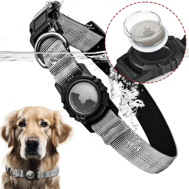 Vodoodporna zaščita AirTag: ovratnica vključuje vodoodporno prevleko za AirTag, ki zagotavlja zaščito pred dežjem in brizgami. To zagotavlja, da sledilnik ostane funkcionalen in pomaga podaljšati njegovo življenjsko dobo.