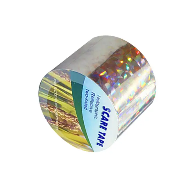 Visoko odsevni material: Ta trak je izdelan iz PET materiala z visoko odsevno površino, ki učinkovito odbija sončno svetlobo in ustvarja bliske in lesk, ki odvračajo ptice od približevanja vaši posesti.