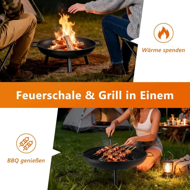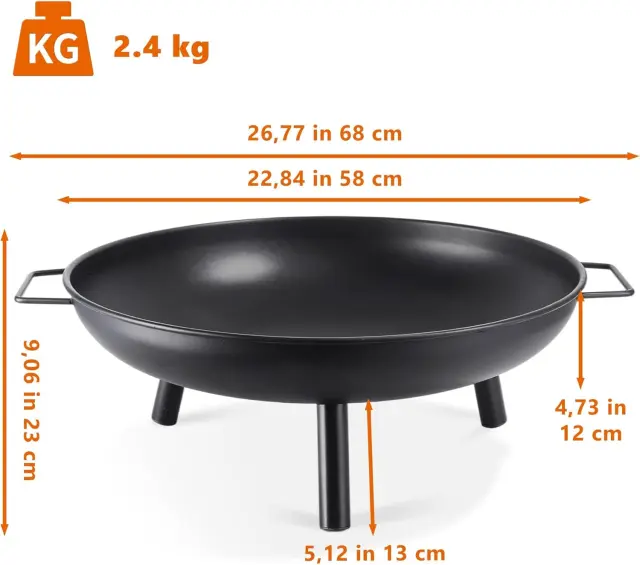 VSESTRANSKO IN RAZNOVRSTNO: Posoda za kurišče (premer 58 cm, širina 68 cm, višina 23 cm, teža 2,4 kg) združuje sodoben dizajn s funkcionalno vsestranskostjo. Izdelana je iz visokokakovostnega železa in je idealna za kurjenje drv, premoga ali briketov – popolna za vse letne čase. Ne glede na to, ali ste na vrtu, terasi ali med kampiranjem, posoda za kurišče ustvari toplo, vabljivo vzdušje za nepozabne večere na prostem.