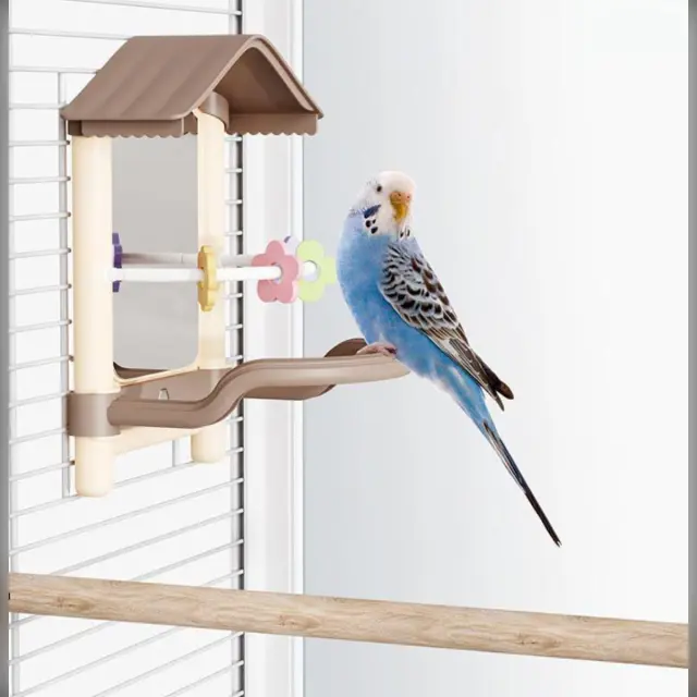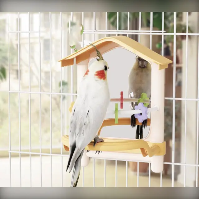 Enostavno čiščenje: Vodoodporen material omogoča enostavno čiščenje. Preprosto sperite ogledalo za kletko za papige, da enostavno odstranite ostanke hrane in iztrebke, kar zagotavlja higienično okolje za vašo ptico. Ta funkcija vam prihrani čas in trud, kar vam omogoča, da se osredotočite na uživanje v svojem hišnem ljubljenčku. Gladka površina preprečuje nabiranje bakterij in omogoča enostavno vzdrževanje čiste in zdrave kletke. Redno čiščenje bo ohranilo ogledalo v najboljšem stanju in zagotovilo varen in prijeten prostor za vašo papigo. Nestrupeni materiali, uporabljeni pri izdelavi tega ogledala za ptice, zagotavljajo varnost vaše ptice.