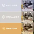 • Nastavljiva barvna temperatura: Prilagodite osvetlitev svojim potrebam s tremi različnimi nastavitvami barv—topla, naravna in bela svetloba—kar zagotavlja popolno osvetlitev za vsak stil ličenja ali ton kože.