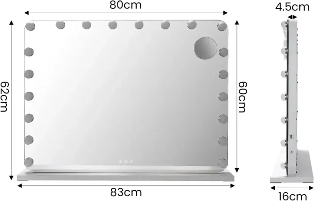 • Visokokakovostne LED žarnice: Uživajte v naravni svetli osvetlitvi z 20 trajnimi LED žarnicami, ki zagotavljajo enakomerno in mehko osvetlitev, preprečujejo naprezanje oči in omogočajo jasno vidljivost za podrobno delo z ličili.