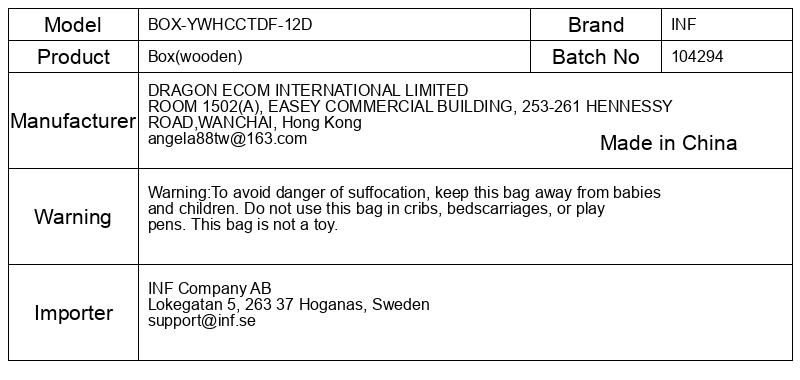 Opozorilo: Da bi se izognili nevarnosti zadušitve, hranite to torbo stran od dojenčkov in otrok. Te vrečke ne uporabljajte v otroških posteljicah, posteljnih vozičkih ali igralih. Ta torba ni igrača.