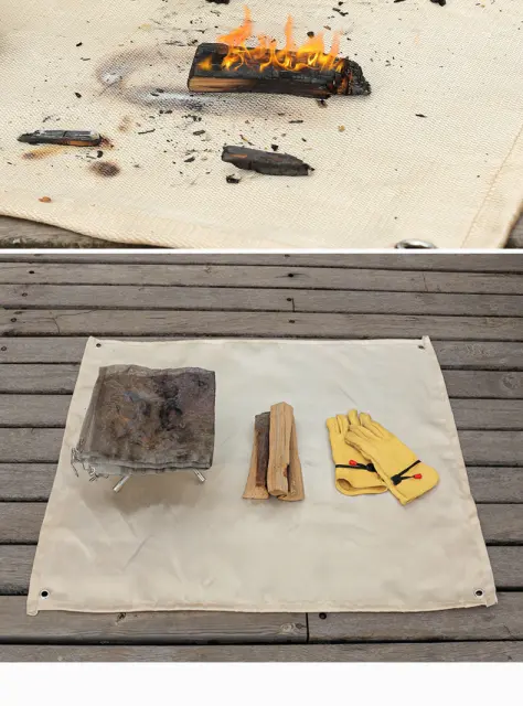 Ognjevarno: vzdrži odprt ogenj in zaščiti tla pred iskrami in žerjavico med tabornim ognjem.