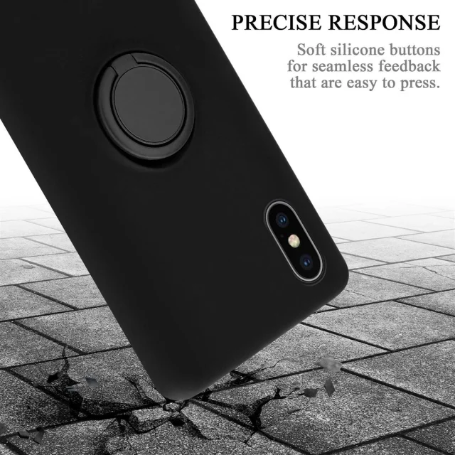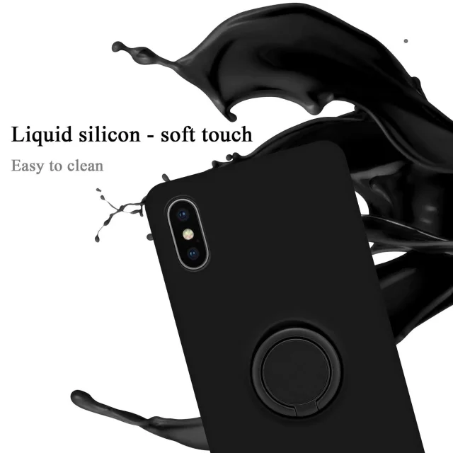 Ohišje Cadorabo, združljiv z Apple v tekoči črni barvi - zaščitni pokrov iz fleksibilnega silikona TPU z obročem
