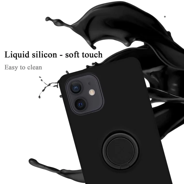 Ohišje Cadorabo, združljiv z Apple v tekoči črni barvi - zaščitni pokrov iz fleksibilnega silikona TPU z obročem