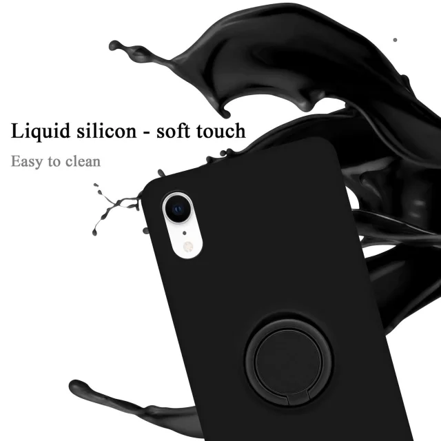 Ohišje Cadorabo, združljiv z Apple v tekoči črni barvi - zaščitni pokrov iz fleksibilnega silikona TPU z obročem