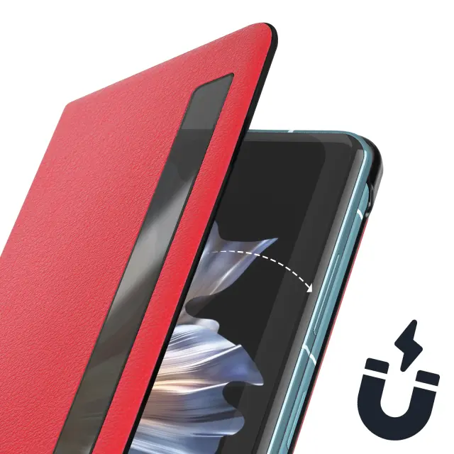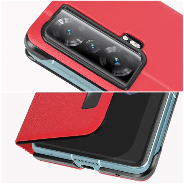 Ovitek Honor Magic Vs 5G Clear View rdec. Ovitek za podporo videa Honor Magic Vs 5G z mehkim silikonskim držalom. Zašcita Honor Magic Vs 5G kartica in shranjevanje vstopnic. Ovitek Honor Magic Vs 5G s prosojnim okencem.