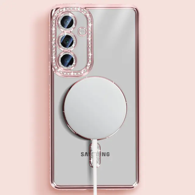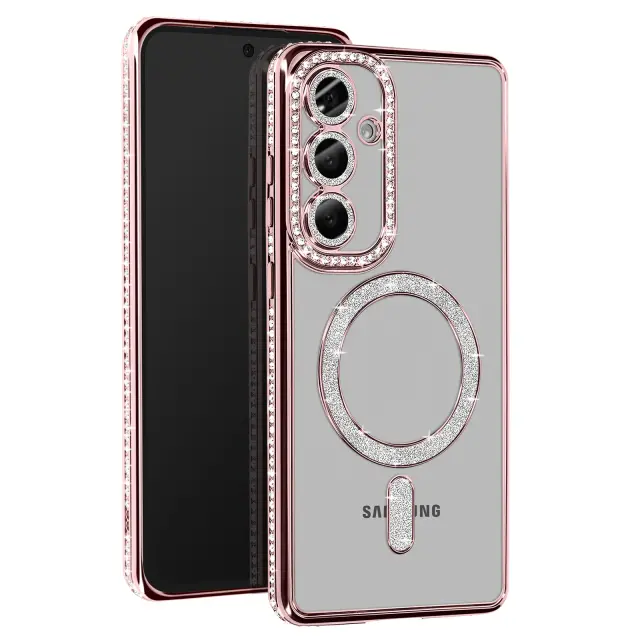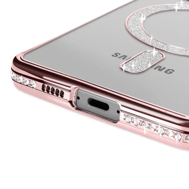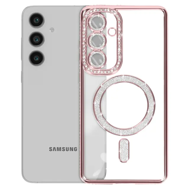 Ohišje Diamond za Samsung Galaxy S24 FE MagSafe Obris Strass, Šampanjec roza