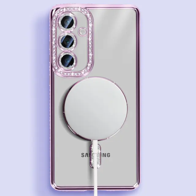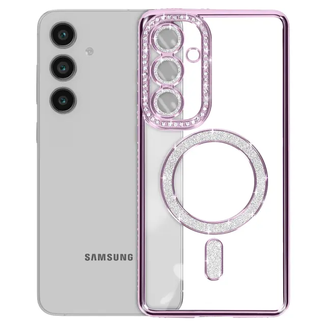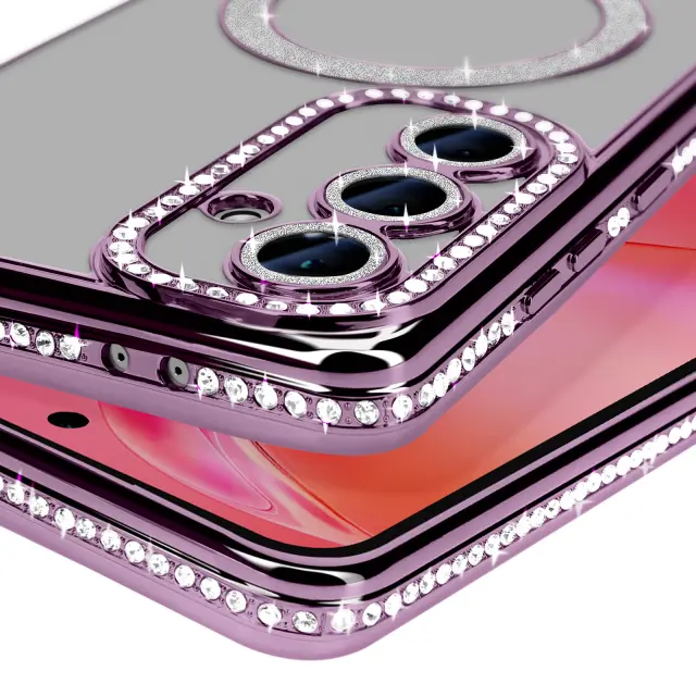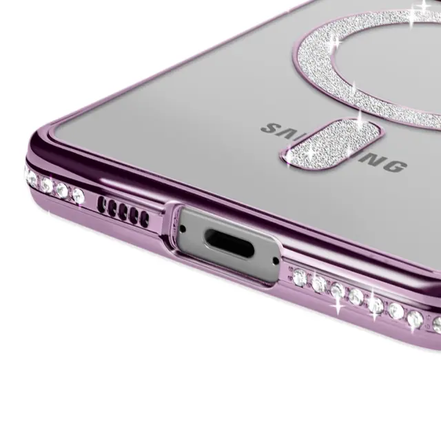 Ohišje Diamond za Samsung Galaxy S24 FE MagSafe Obris Strass, Vijolična