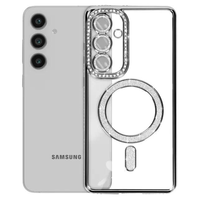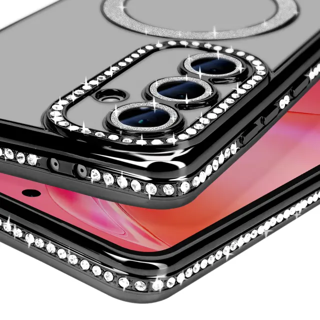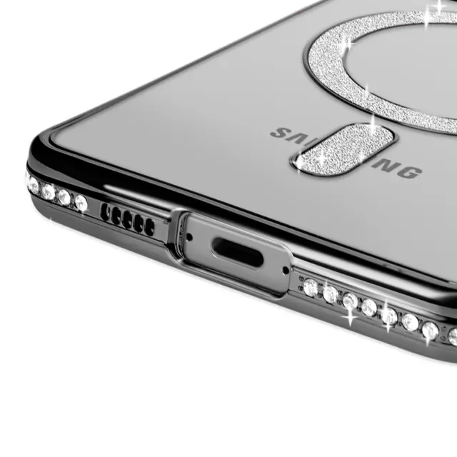 Ohišje Diamond za Samsung Galaxy S24 FE MagSafe Obris Strass, Črna