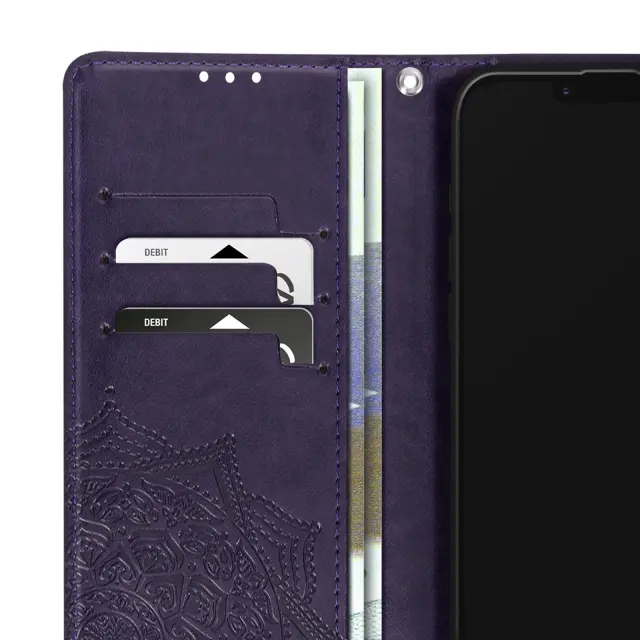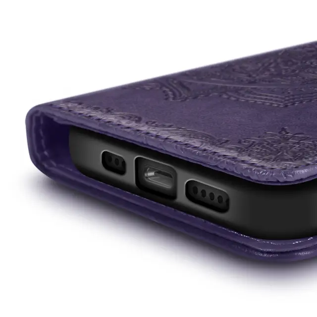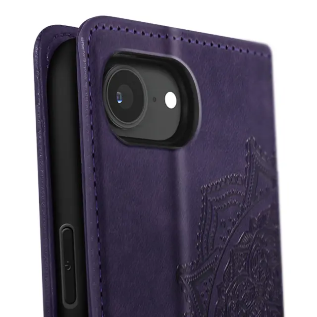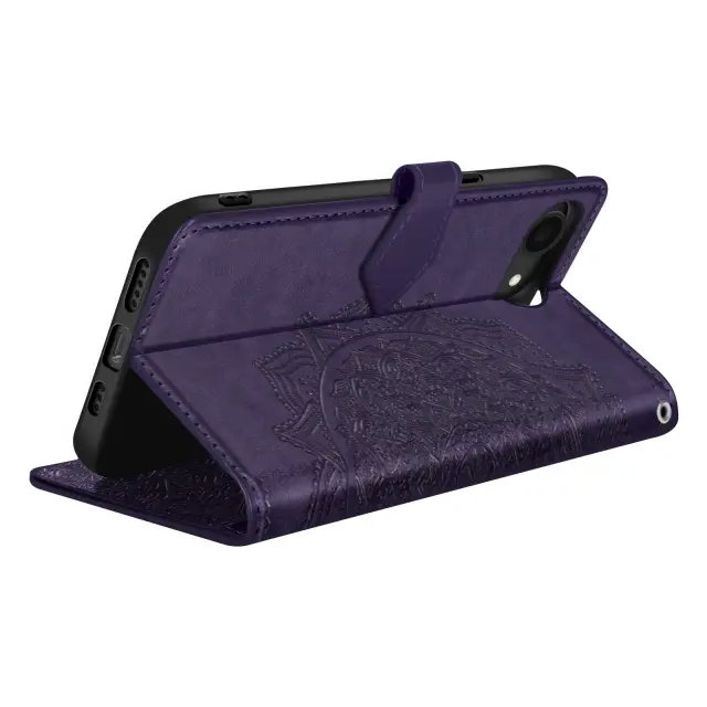 Ohišje Flowers Mandala za iPhone 16e Denarnica s trakom, Vijolična