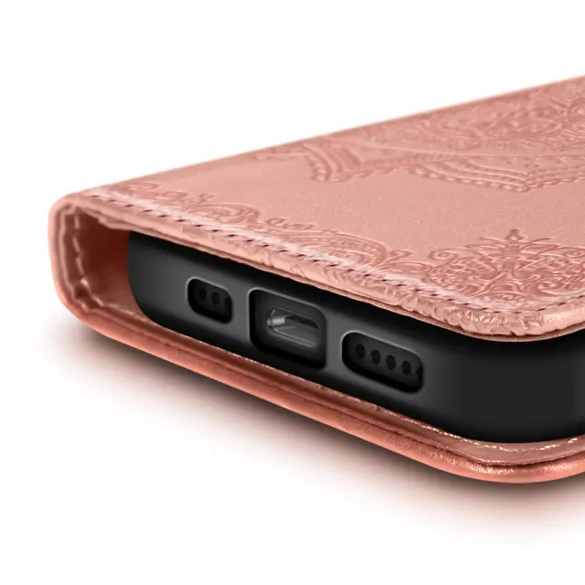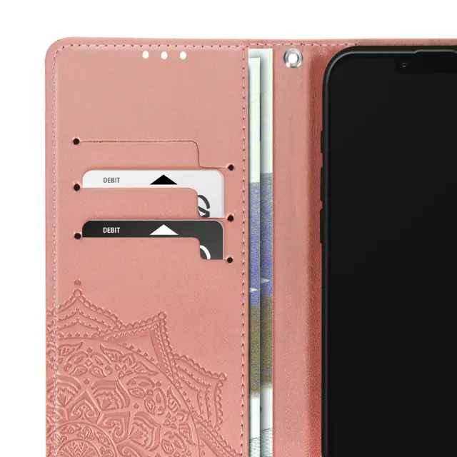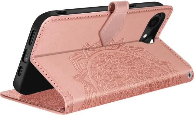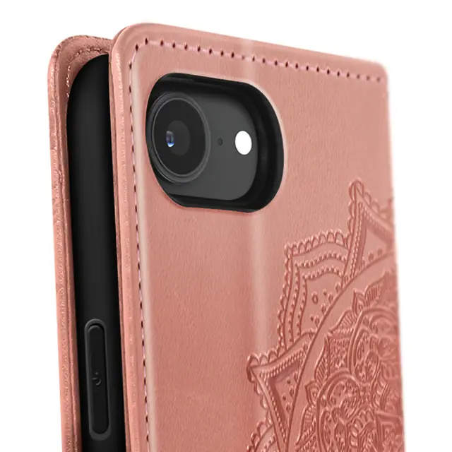 Ohišje Flowers Mandala za iPhone 16e Wallet Strap, Šampanjec roza