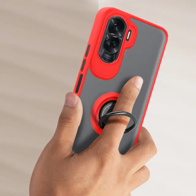 Rdeca torbica iz dveh materialov Honor 90 Lite, serija Ringrip, šciti vaš telefon pred udarci in praskami. Zašcita z zadrževalnim obrocem, ki se lahko uporablja kot video nosilec in združljiv z magnetnim nosilcem (ni vkljucen). Mat zakljucek proti prstnim odtisom.