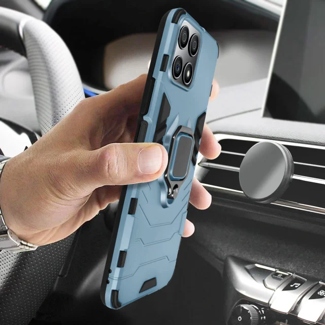 Ohišje Honor X8 iz dveh materialov, odporno na udarce, s kovinskim obrocem - modro