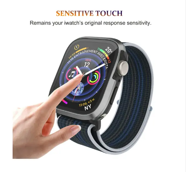 Vrhunska zaščita: To natančno izdelano ohišje iz aluminijeve zlitine zagotavlja celovito zaščito za vašo uro Apple Watch 10. Integrirano kaljeno steklo ščiti zaslon pred praskami, odrgninami in udarci ter ohranja njegovo prvotno jasnost in odzivnost. Robustna konstrukcija iz aluminijeve zlitine učinkovito absorbira udarce in zmanjšuje škodo zaradi nenamernih udarcev in padcev, kar zagotavlja, da vaša dragocena naprava ostane varna in zaščitena v vsakem okolju. Uživajte v brezskrbnosti, saj veste, da je vaša ura Apple Watch zaščitena pred vsakodnevno obrabo.