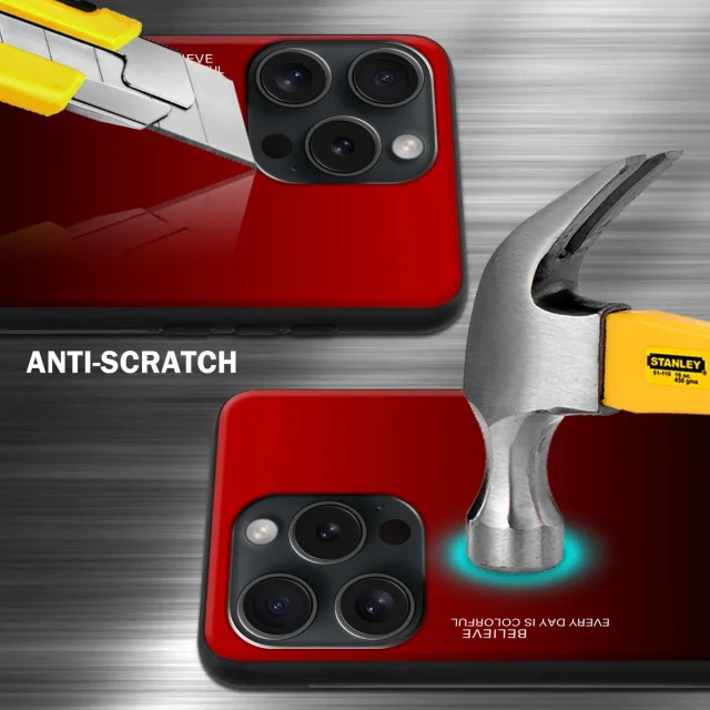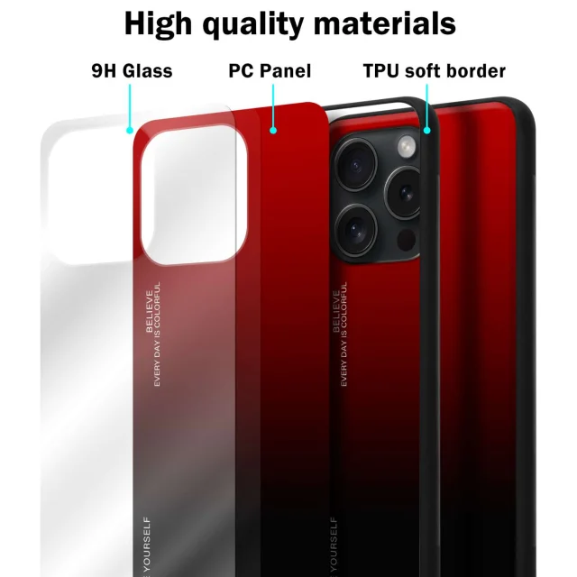 Ohišje je združljivo z Apple iPhone 15 PRO in rdeča - črna - Dvobarvni zaščitni pokrov iz silikona TPU in hrbtna stran iz kaljenega stekla