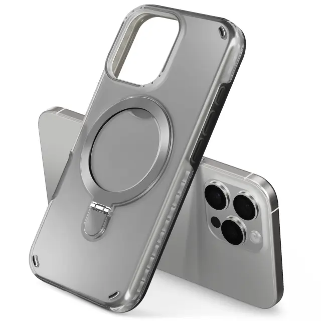 Ohišje MagSafe, odporno na udarce, za iPhone 16 Pro s stojalom, Črna