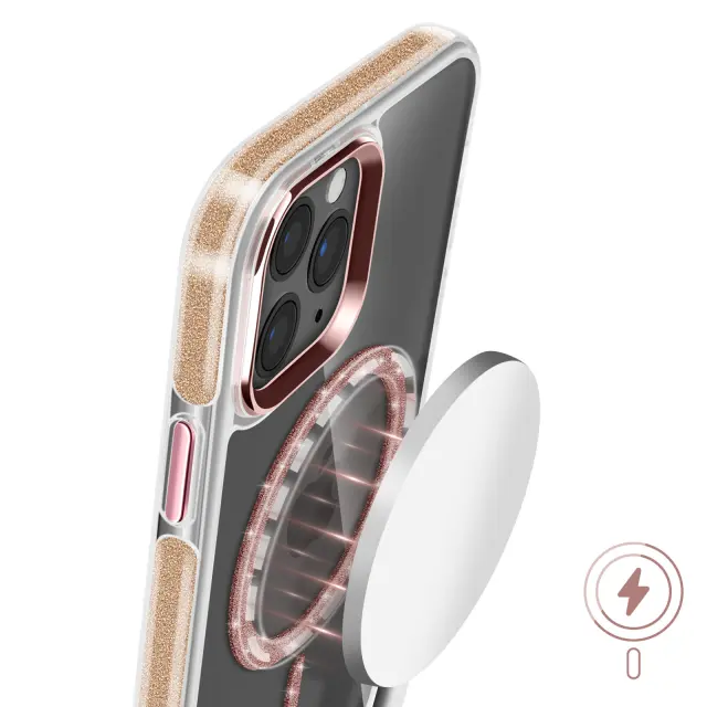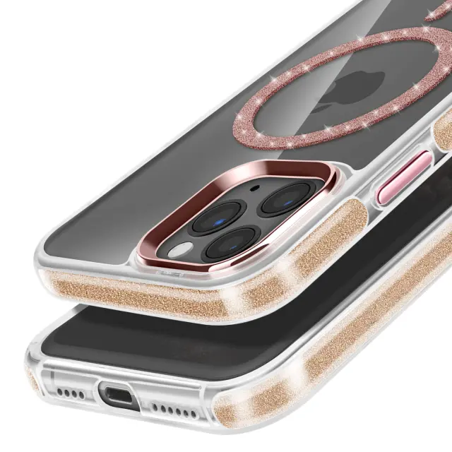 Ohišje MagSafe za iPhone 11 Pro Max Silicone Glitter, Šampanjec roza