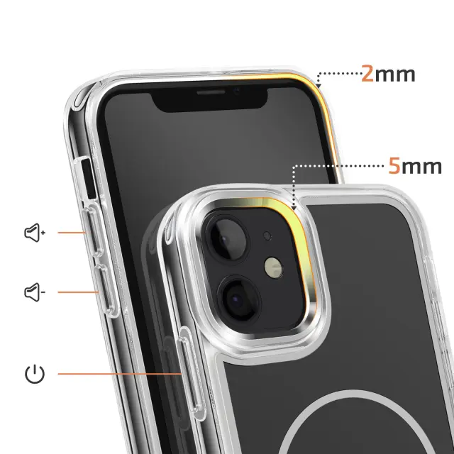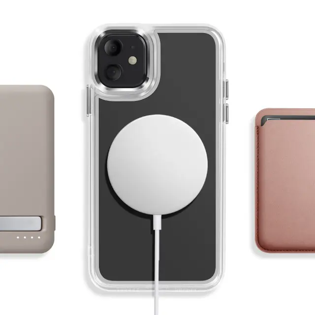 Ohišje MagSafe za iPhone 11 združuje togost in prožnost, da učinkovito absorbira udarce. Magnetni obroč MagSafe za združljivost s hitrim brezžičnim polnjenjem. Mat črna, trda hrbtna stran, ki preprečuje sledenje prstnih odtisov in ohranja najboljši videz dizajna. Ojačani vogali z diskretnimi zračnimi blazinami za optimalno zaščito pred udarci brez dodatne teže.