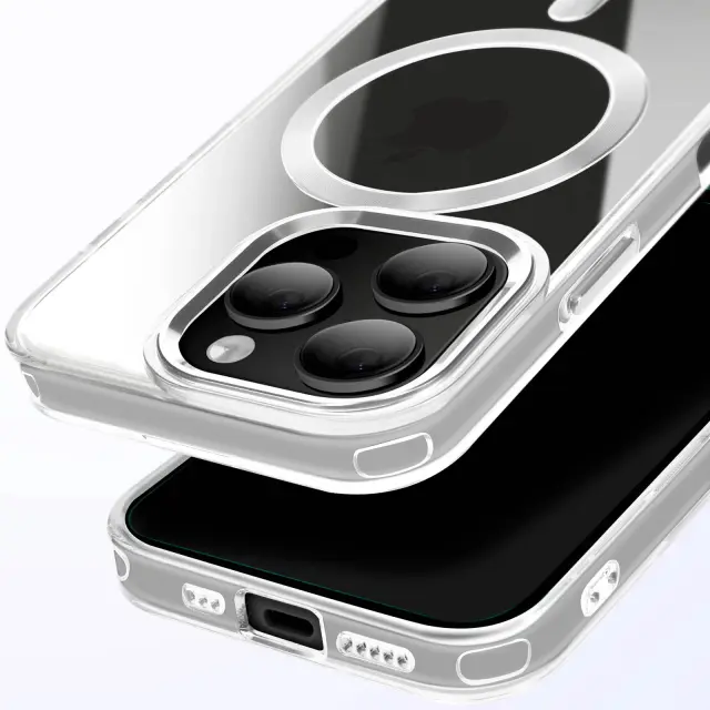 Ohišje Cristal Color združuje kristalno prosojnost in prefinjene barvne podrobnosti, da izboljša vaš iPhone 13 Pro. Vgrajen sistem MagSafe za hitro in varno brezžično polnjenje brez odstranjevanja ohišja. Trden hrbet in prožen obris za učinkovito in ustrezno zaščito pred padci in udarci. Dvignjeni robovi kamere s kovinskim učinkom preprečujejo udarce in praske na objektivu.