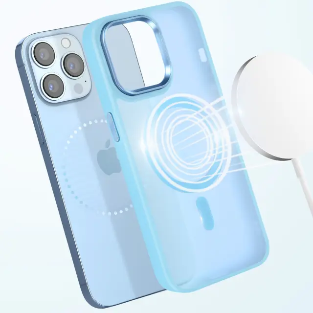 Ohišje MagSafe za iPhone 13 Pro Max Back Mat Frosted Obris, Svetlo modra