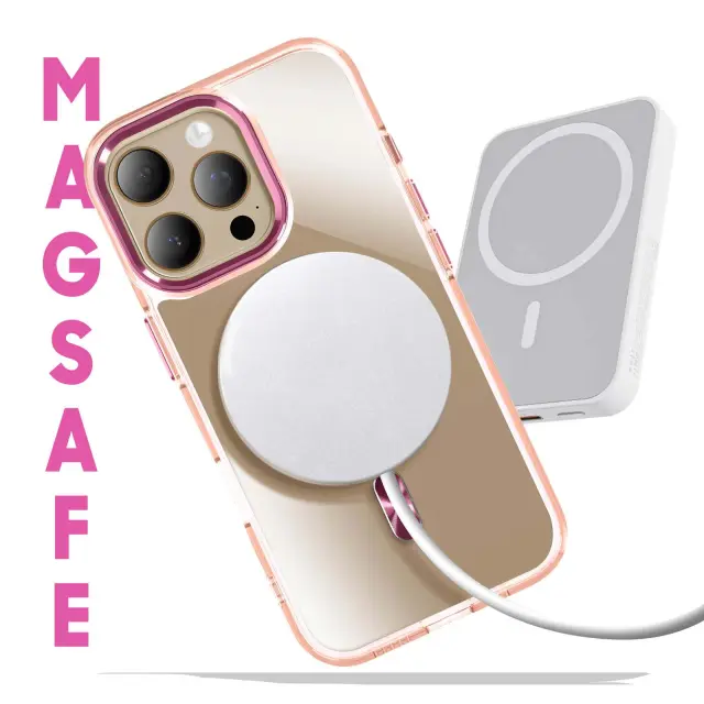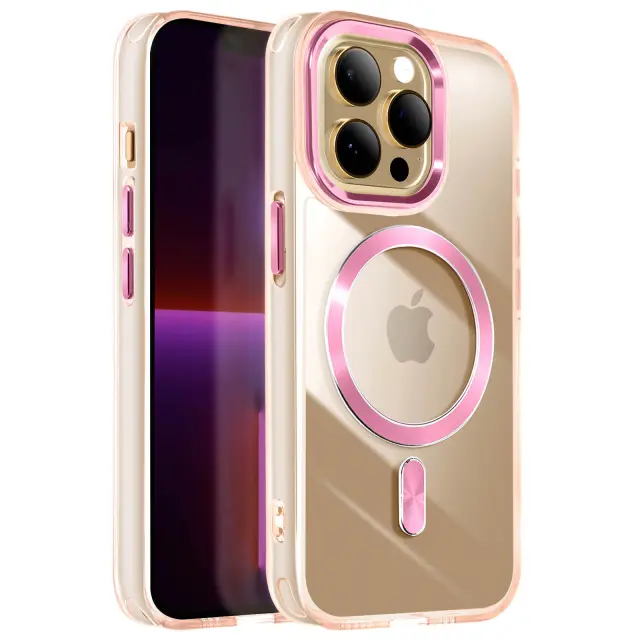Ohišje MagSafe za iPhone 13 Pro Max Crystal Back Color, Šampanjec roza
