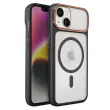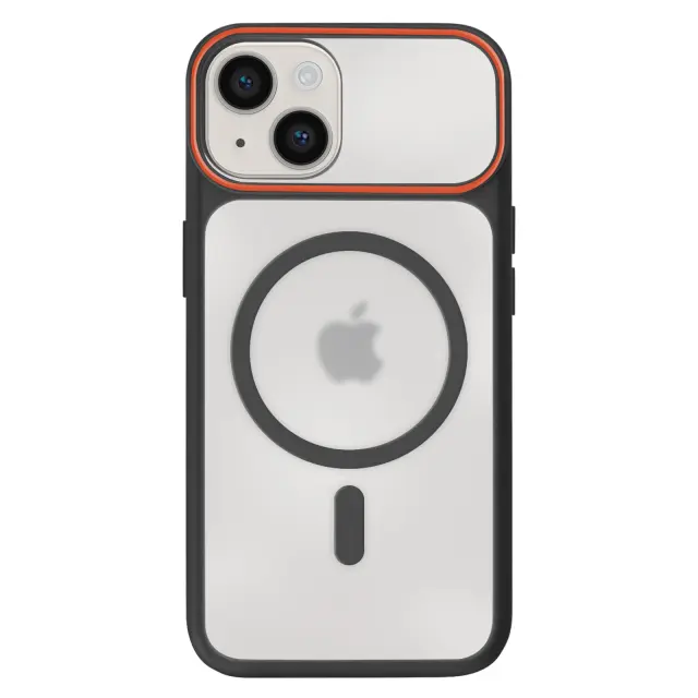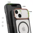 Ohišje MagSafe za iPhone 14 / 13 zagotavlja stabilno pritrditev z dodatki MagSafe. Dimljena prosojna polikarbonatna trda hrbtna stran, ki ščiti zadnjo stran in hkrati razkriva logotip Apple. Poltrdni črni silikonski okvir za boljši oprijem in učinkovito blaženje udarcev. Okrepljen otok kamere z oblikovanim prekrivanjem in 2 mm dvignjenim robom zaslona za zaščito pred praskami.