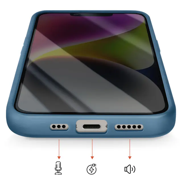 Ohišje MagSafe za iPhone 14 / 13 zagotavlja stabilno pritrditev z dodatki MagSafe. Dimljena prosojna polikarbonatna trda hrbtna stran, ki ščiti zadnjo stran in hkrati razkriva logotip Apple. Poltrdi modri silikonski okvir za boljši oprijem in učinkovito blaženje udarcev. Okrepljen otok kamere z oblikovanim prekrivanjem in 2 mm dvignjenim robom zaslona za zaščito pred praskami.