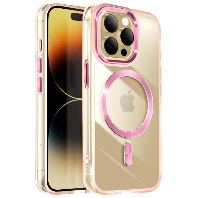 Ohišje MagSafe za iPhone 14 Pro Crystal Color Back, Šampanjec roza