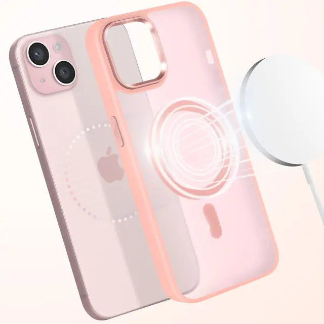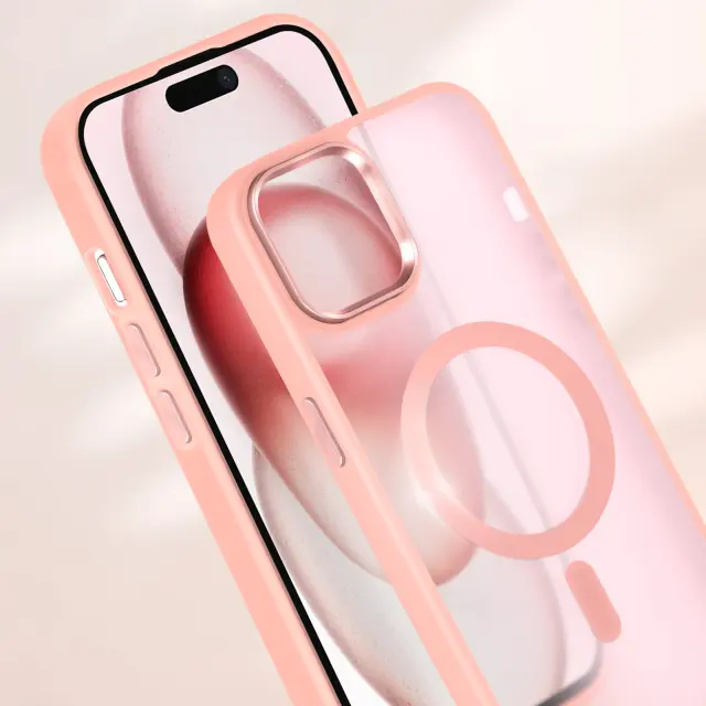 Ohišje MagSafe za iPhone 15 Hrbtna podloga Frosted Obris, Roza