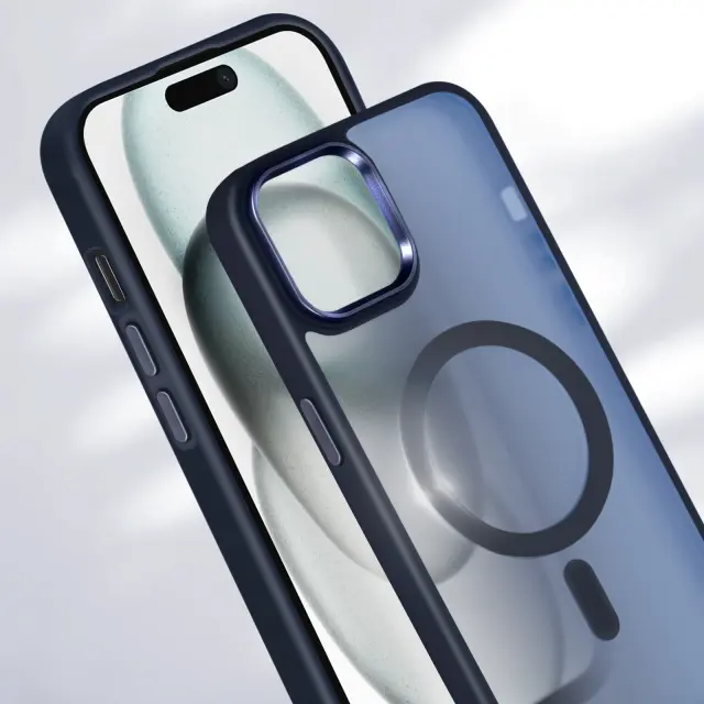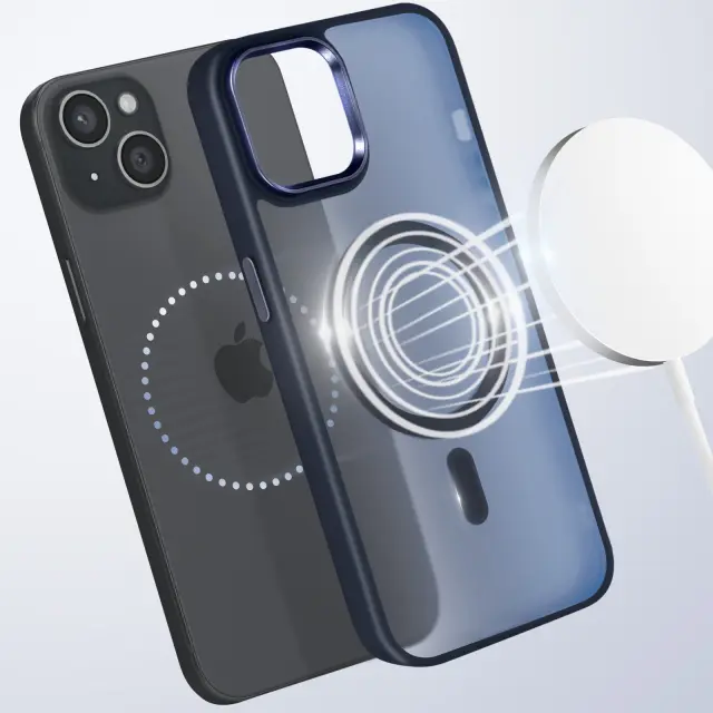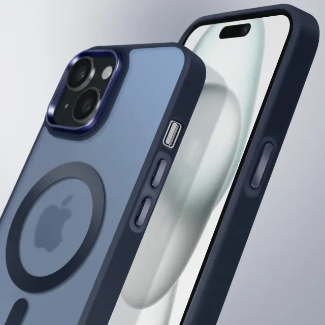 Ohišje MagSafe za iPhone 15 Hrbtna podloga Frosted Obris, Modra noč