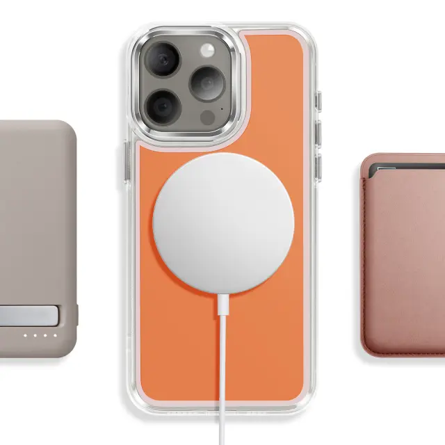 Vgrajen magnetni obroč za natančno poravnavo za brezžično polnjenje in uporabo magnetnih pripomočkov, združljivih s sistemom MagSafe. Kombinacija matirane trde hrbtne strani, ki preprečuje praske, in prozorne, ojačane mehke oblike za dobro ravnovesje med slogom in vsakodnevno zaščito.. Ojačani vogali z notranjimi zračnimi blazinami, ki blažijo udarce pri vsakodnevnem rokovanju in padcih.. Rahlo dvignjen, metaliziran okvir kamere, ki pomaga zmanjšati praske na površinah.