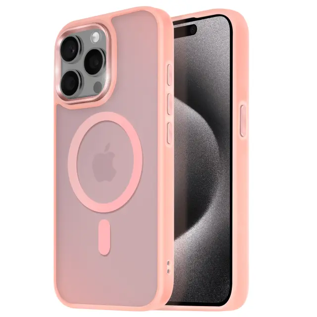 Ohišje MagSafe za iPhone 15 Pro Max Back Mat Frosted Obris, Roza