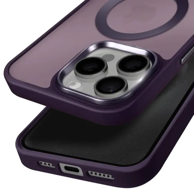 Ohišje MagSafe za iPhone 15 Pro Max Back Mat Frosted Obris, Vijolična