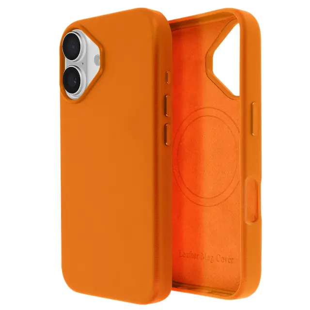 Ohišje MagSafe za iPhone 16 iz visokokakovostnega veganskega usnja, Oranžna