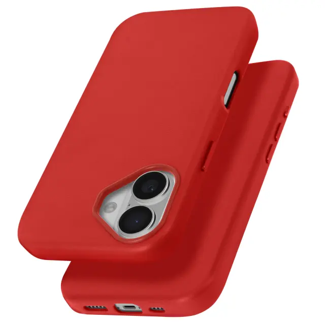Ohišje MagSafe za iPhone 16 iz visokokakovostnega veganskega usnja, Rdeča