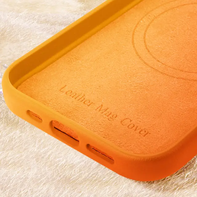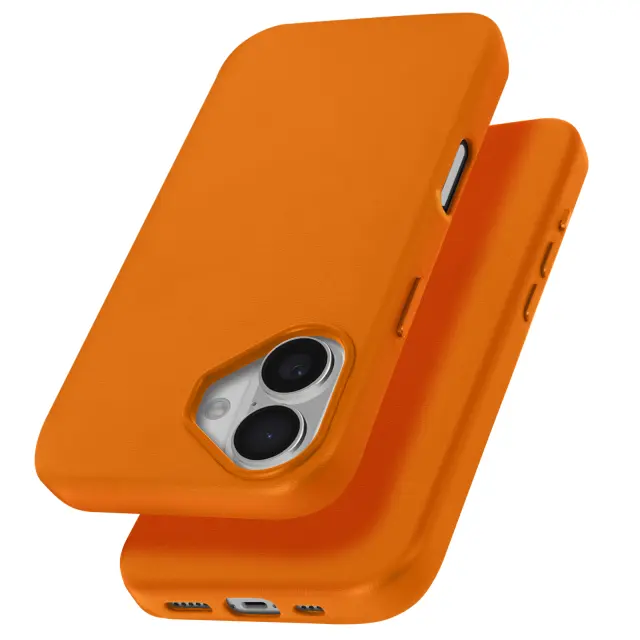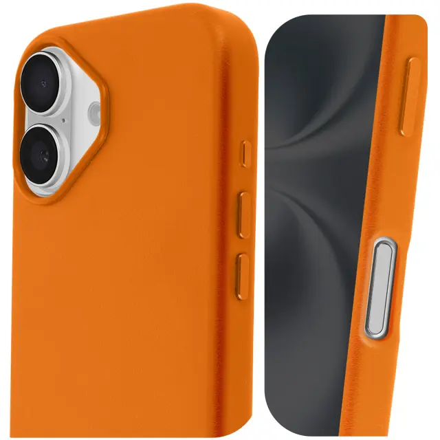 Ohišje MagSafe za iPhone 16 Plus iz visokokakovostnega veganskega usnja, Oranžna