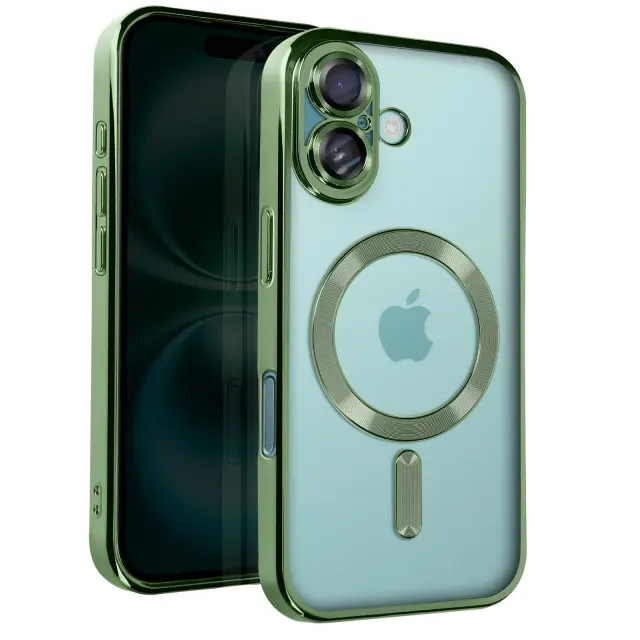 Ohišje MagSafe za iPhone 16 Plus Silikonski kromirani okvir, Temno zelena
