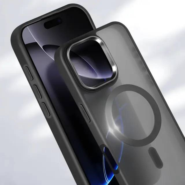 Ohišje MagSafe za iPhone 16 Pro Max Back Mat Frosted Obris, Črna