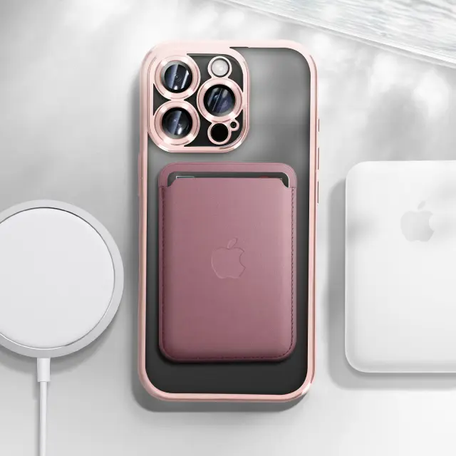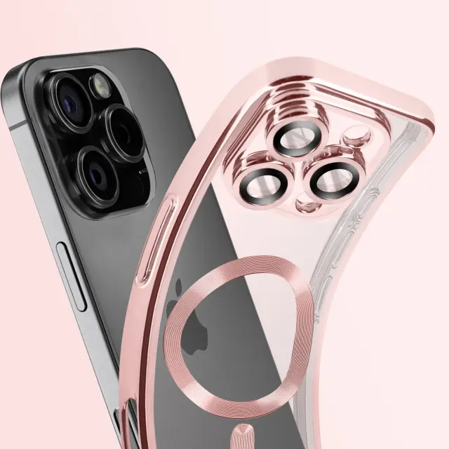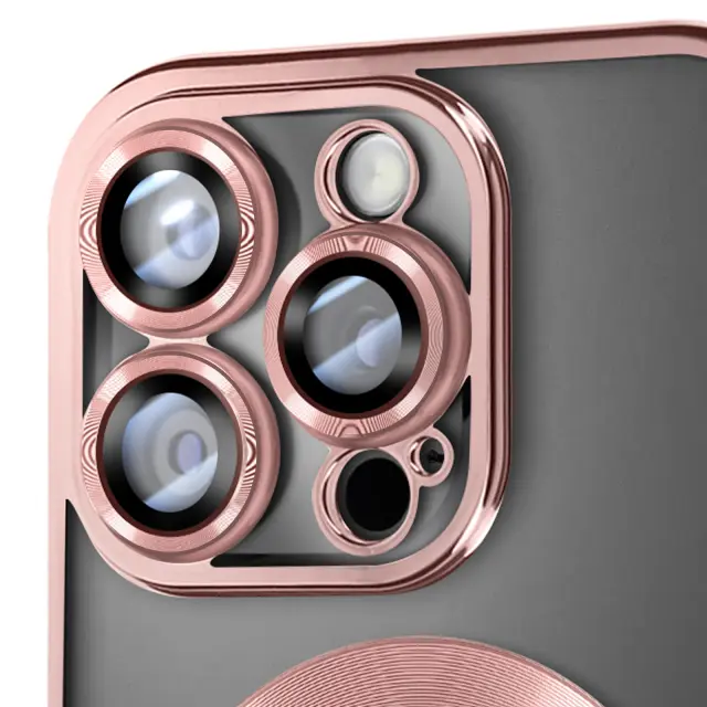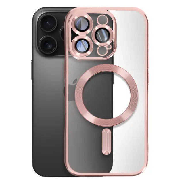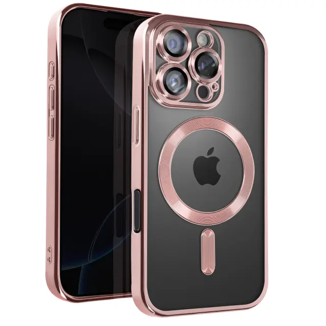 Ohišje MagSafe za iPhone 16 Pro Max Silikonski kromirani okvir, Šampanjec roza