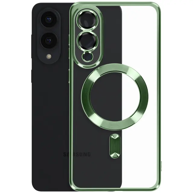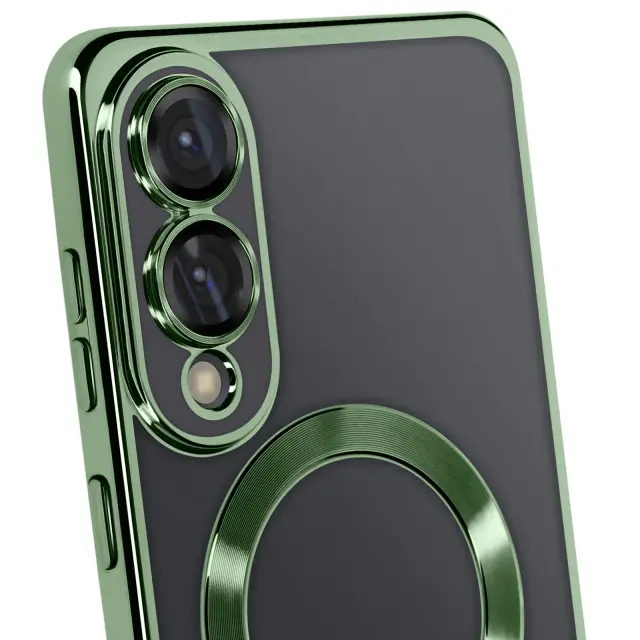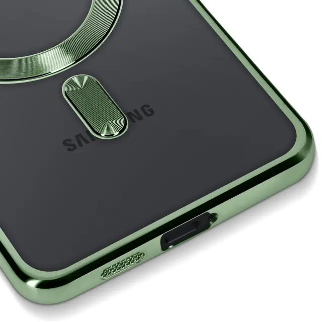 Ohišje MagSafe za Samsung Galaxy S25 Edge Silikonski kromirani okvir, Zelena